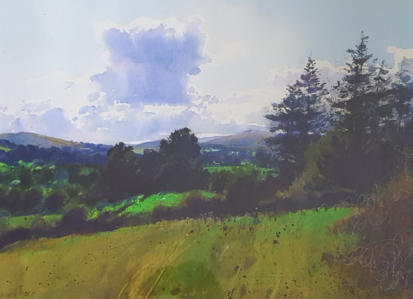 “Dartmoor Drifter”  Acrylic (unframed)	 Size: 40" x 55" (102cm x 141cm) “Colin’s Barn”  Ink & Wash (unframed)	 Size: 30" x 24" (76cm x 61cm)